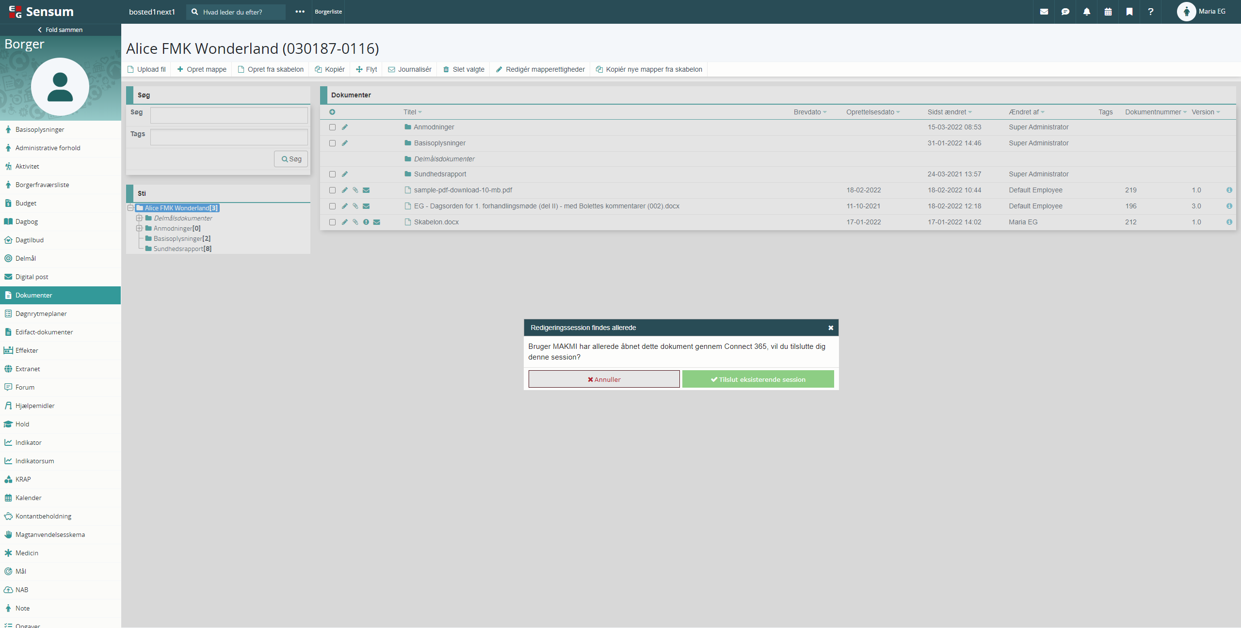 Her skal du klikke på Tilslut eksisterende session hvis du ønsker at redigere dokumentet. Følg herefter ovenstående proces for at redigere og gemme dine ændringer.