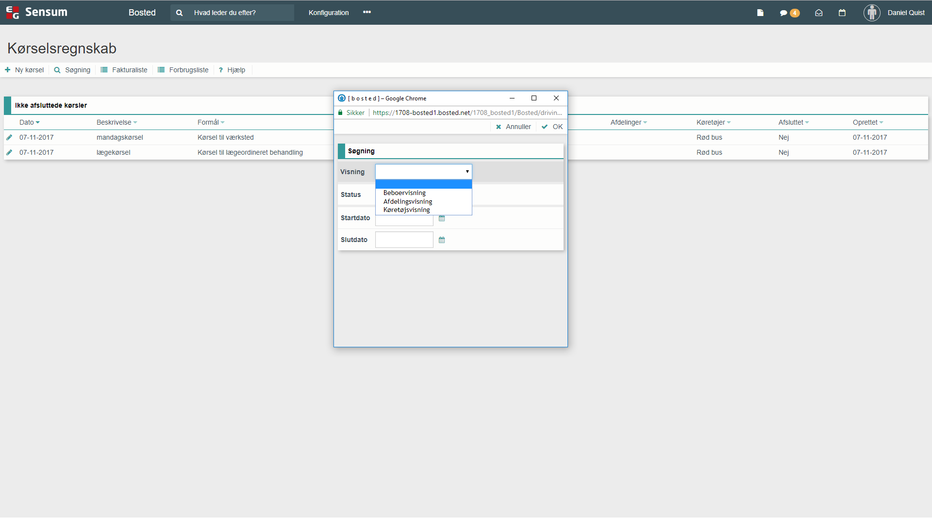 Det er muligt at søge efter specifikke kørselsberegninger.