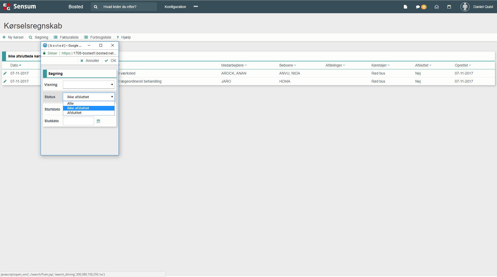 Søgefunktionen i Kørselsberegning