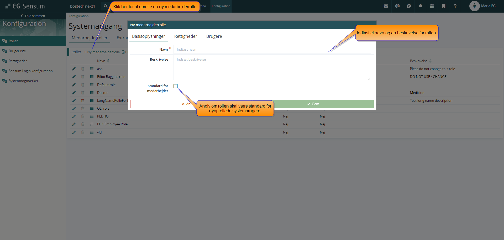 Angiv et navn og eventuelt en beskrivelse af den nye medarbejderrolle.