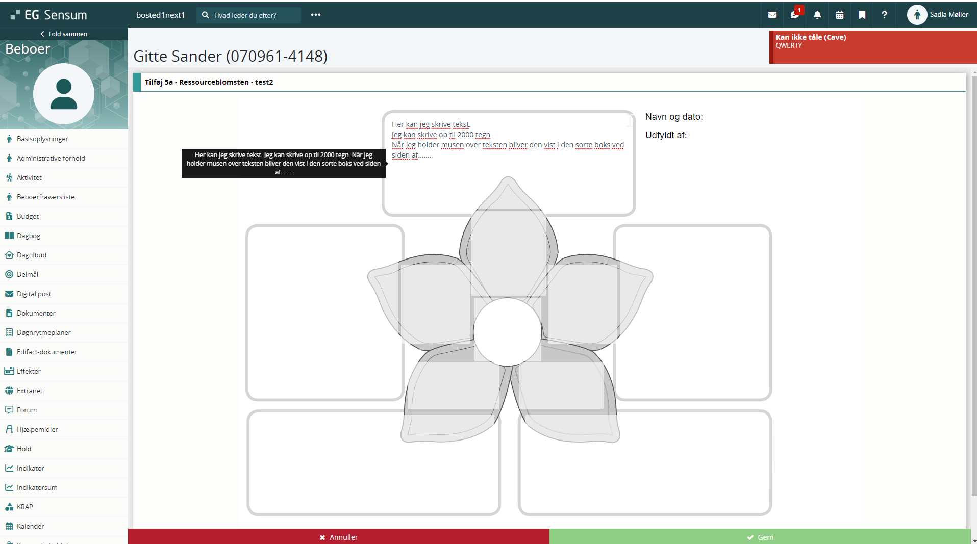 Nu kan du skrive og ændre i tekst i skemaet. Hold musen over, hvis du vil have vist hele din tekst.