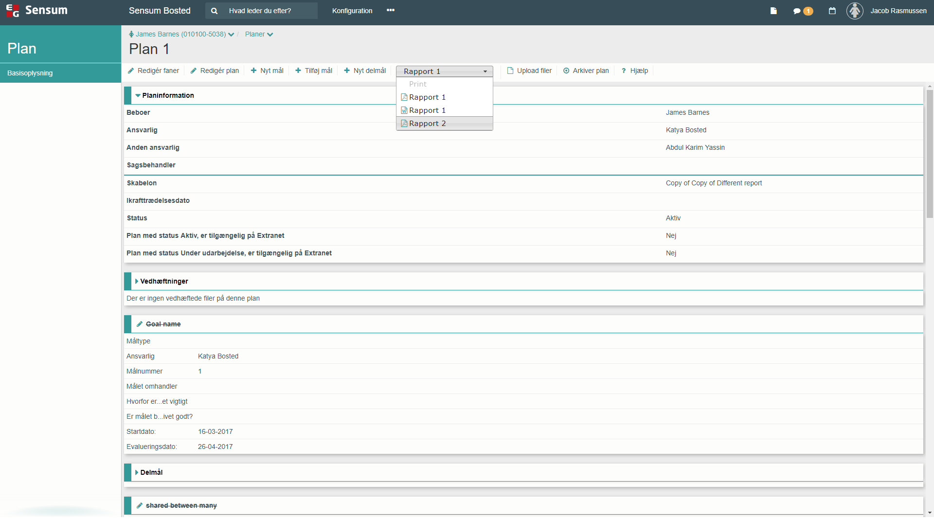 - Gå til det relevante stamkort, og klik på Plan i sidemenuen. En liste med planer vises.