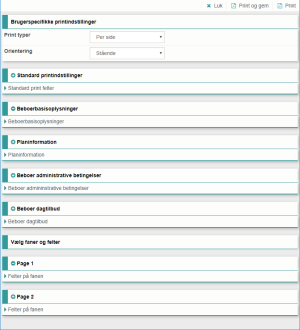[Navn på print], hvor det er blevet defineret at printindstillinger skal vises. (se venligst Konfigurer printindstillinger for skabeloner), skærmbilledet vil være vist forneden: