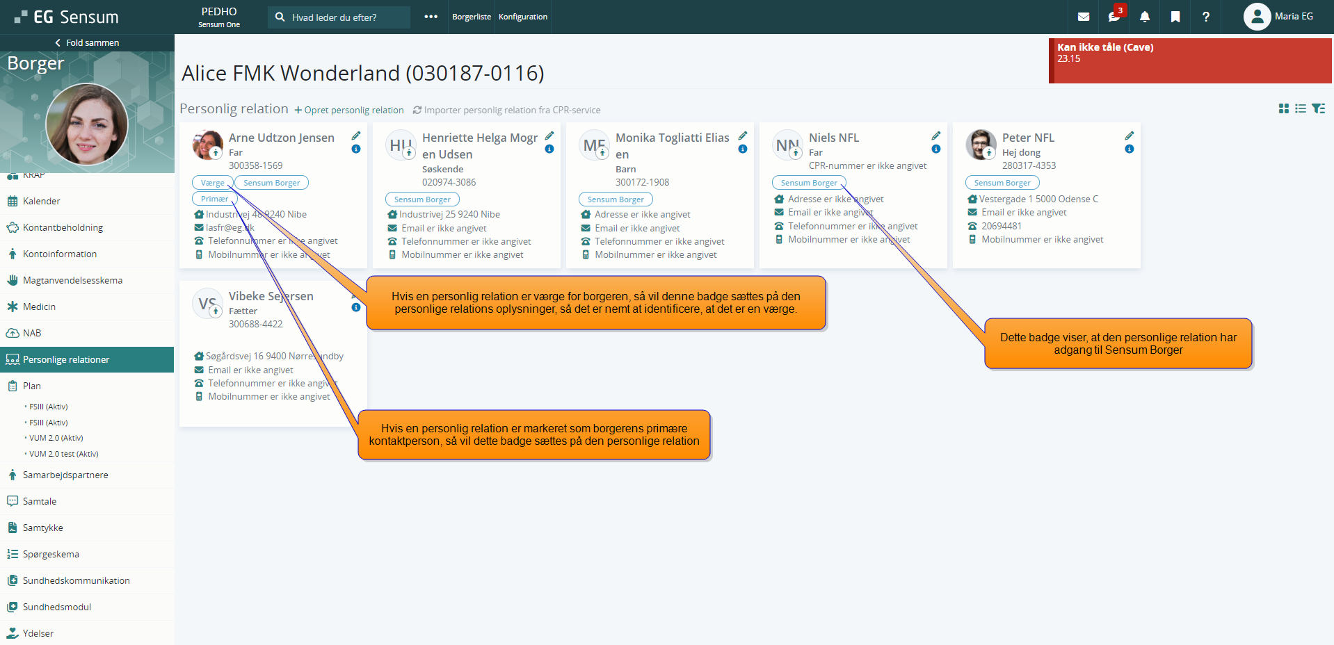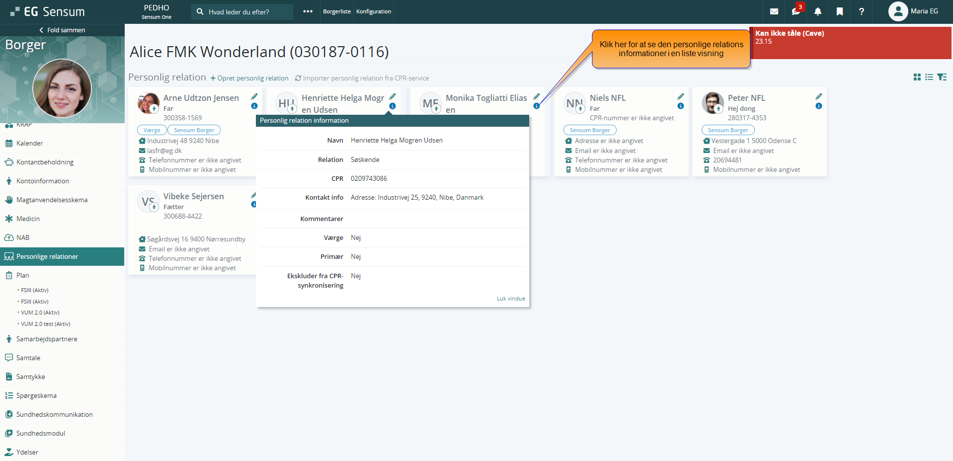 I Sensum One kan du tilføje personlige relationer til en borger. Det kan være givtigt for at have et overblik over borgerens nærmeste kontaktpersoner.
