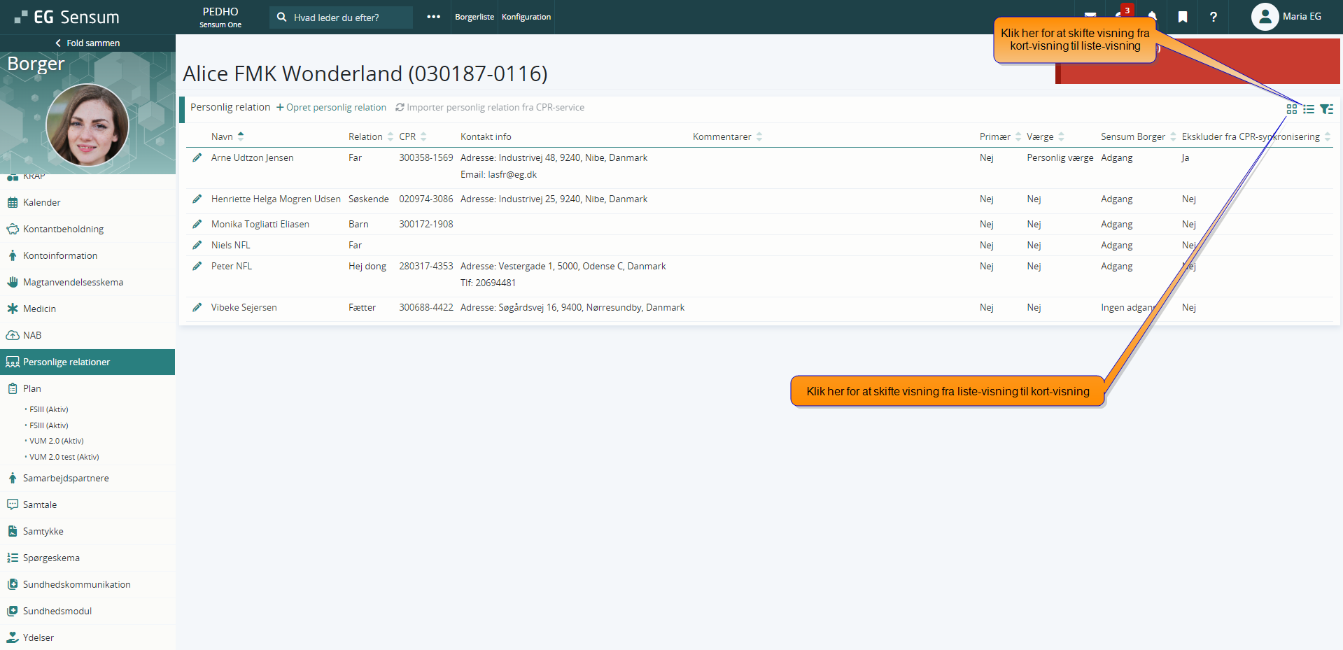 -ikon. Hvis du klikker på ikonet, så kan du se den personlige relations oplysninger i en liste. Det er samtidig også de informationer, der kan redigeres ved at klikke på