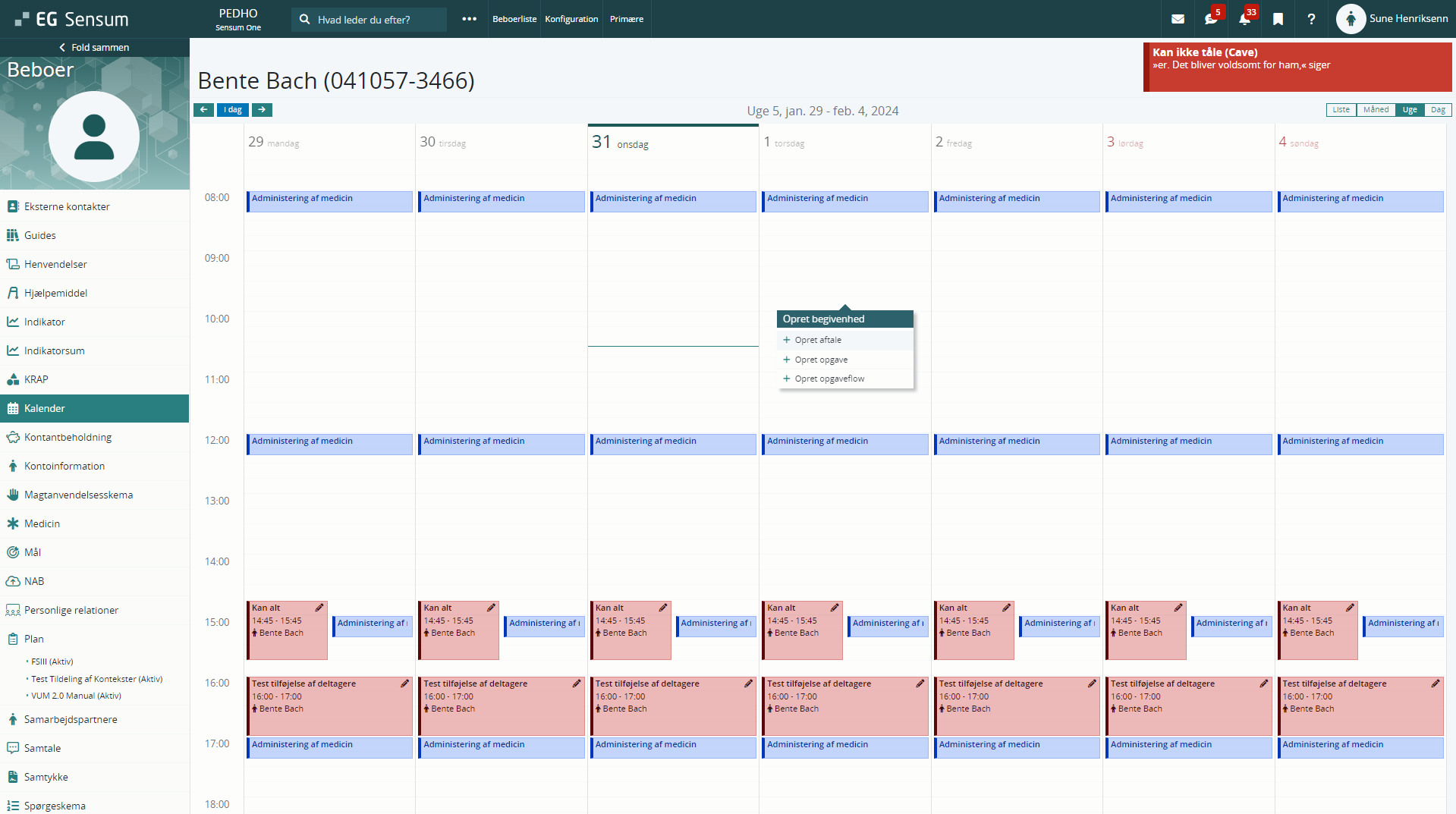 Gå til den rette borgers stamkort eller på dit eget stamkort, hvis du vil se din afdelings kalender.