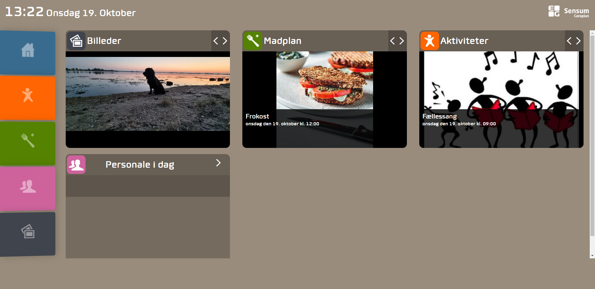 Du kan konfigurere og tilpasse din infoskærms forside. En forside gør det muligt at vise flere elementer på én gang.