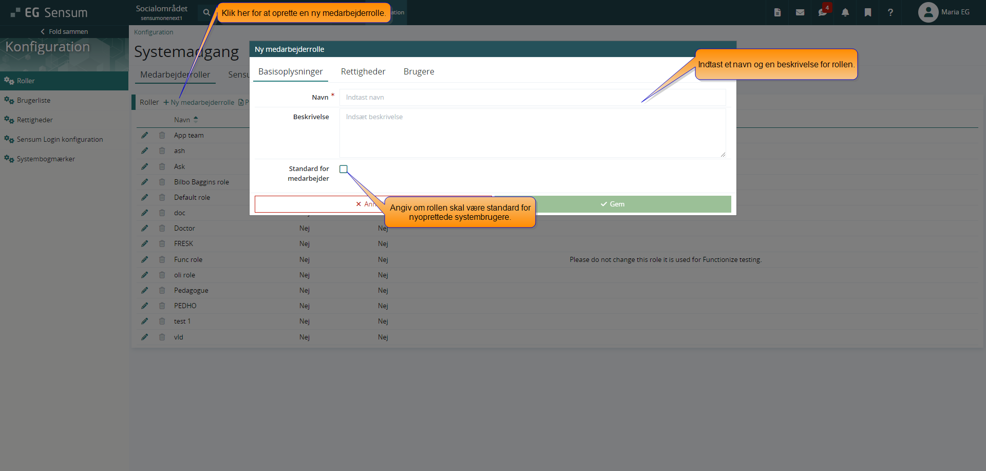 Ny medarbejderrolle. Et popup-vindue åbnes: