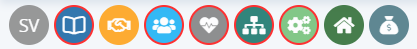 Øverst i modulet er der en linje af ikoner, der afspejler hvert kvalitetstema, der er i den pågældende kvalitetsmodel. Disse ikoner er genveje, du kan klikke på for at hoppe direkte ned til temaet.