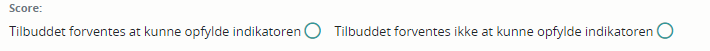 En indikator har også en score. Typen af score bestemmes af, om leverandørsagen er under godkendelse eller om den er i drift.